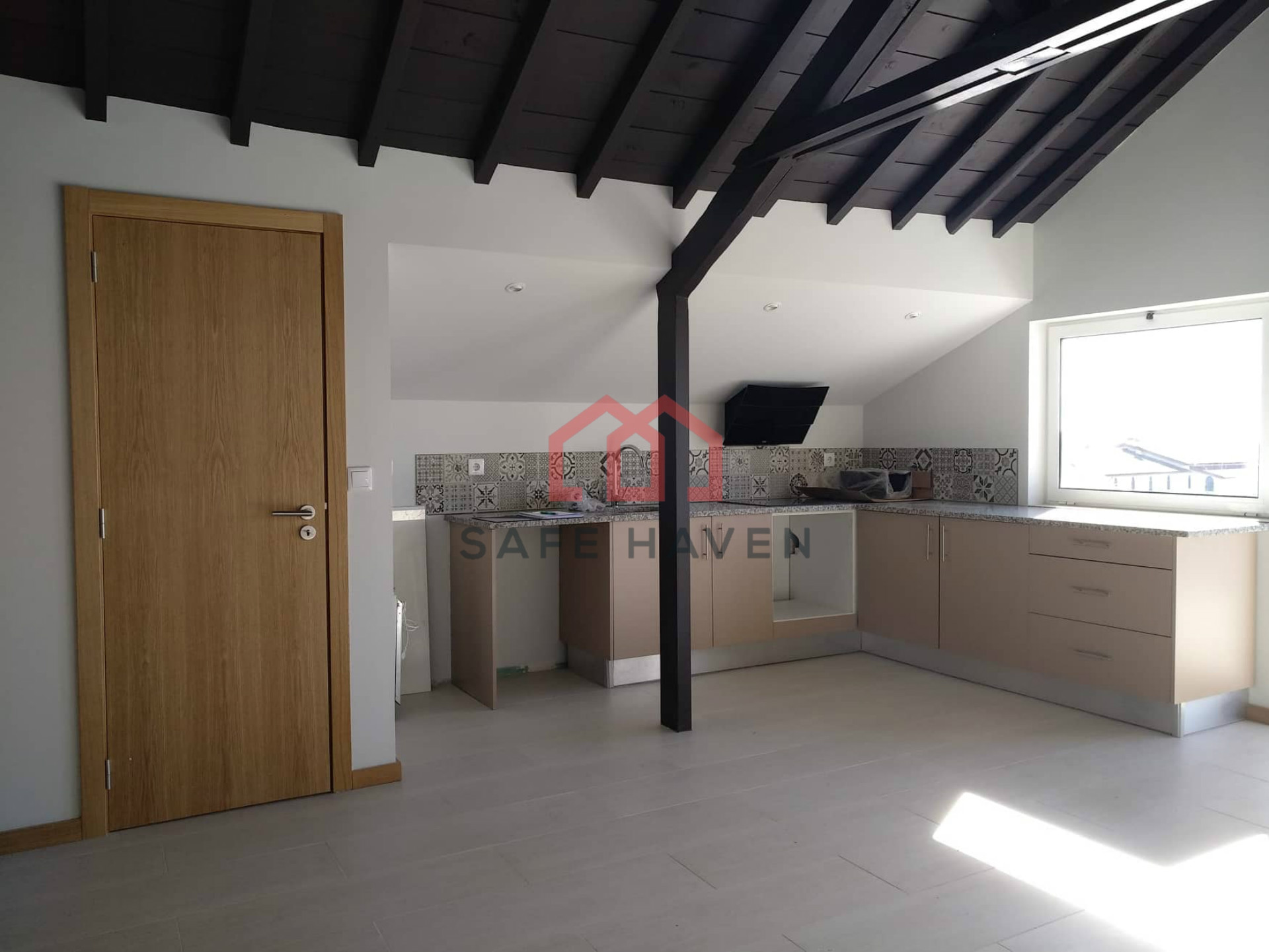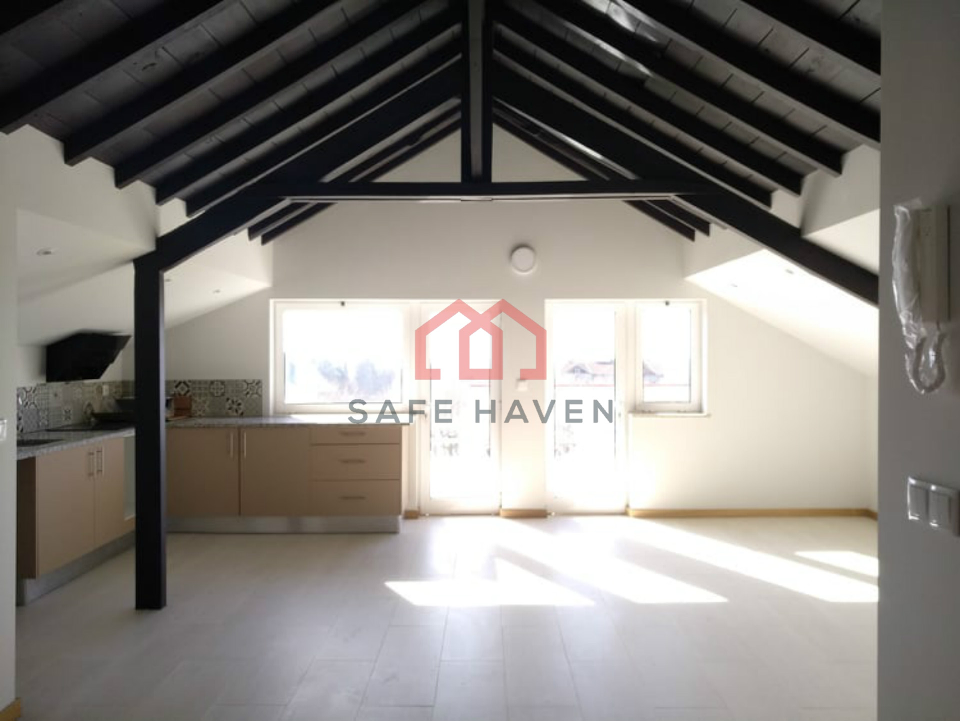 É constituído por sala/cozinha open-space equipada com placa e exaustor, dois quartos (sendo um suite) e varanda.