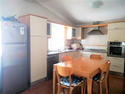 Desenvolve-se em R/C e 1º andar, e é constituída por duas salas, duas cozinhas, 3 WCs, e quatro quartos (com roupeiros embutidos), sendo um deles suite.