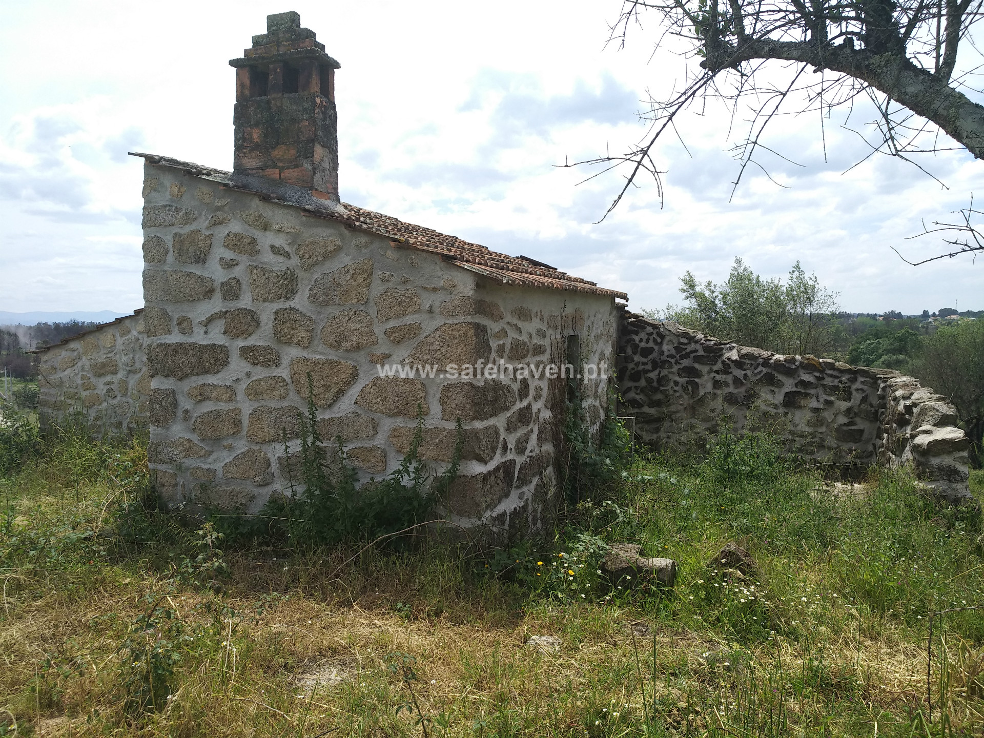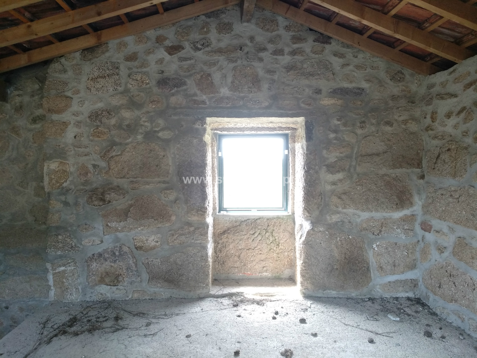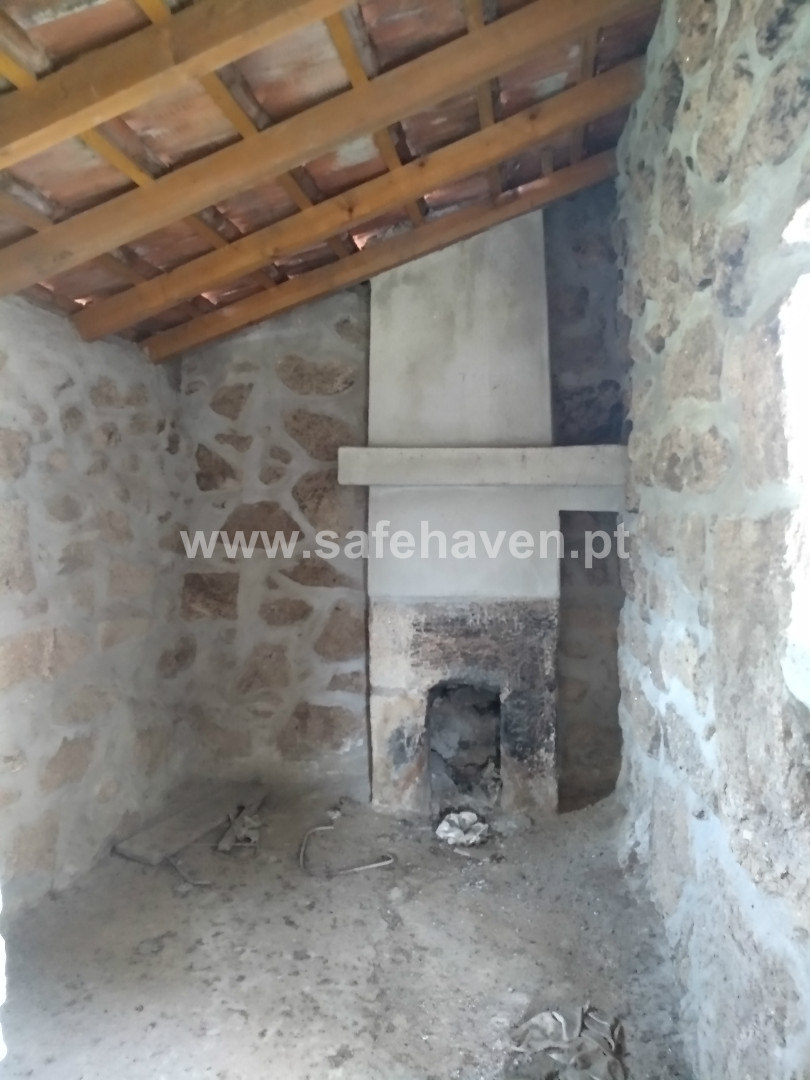 Dispõe de uma moradia T0 em pedra com 70 m2, parcialmente recuperada.